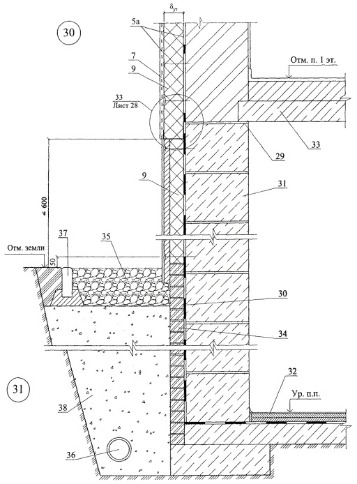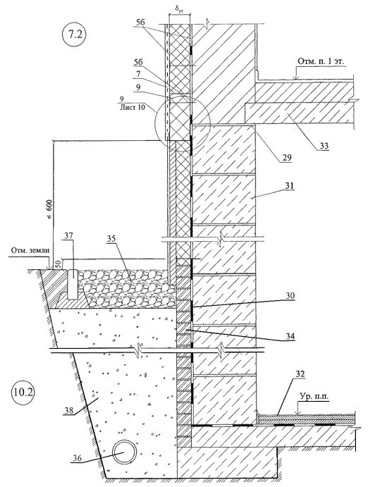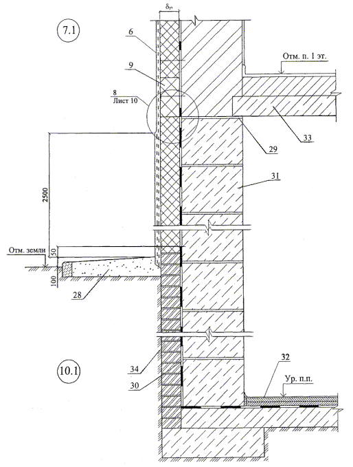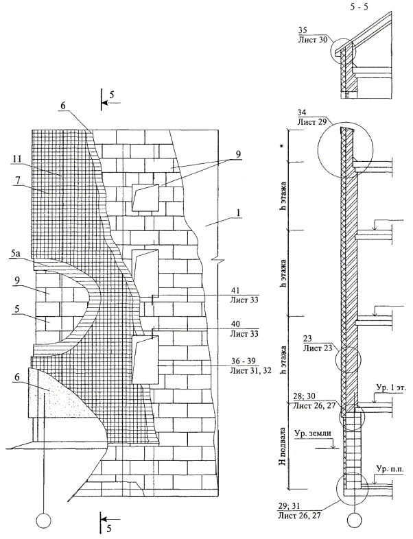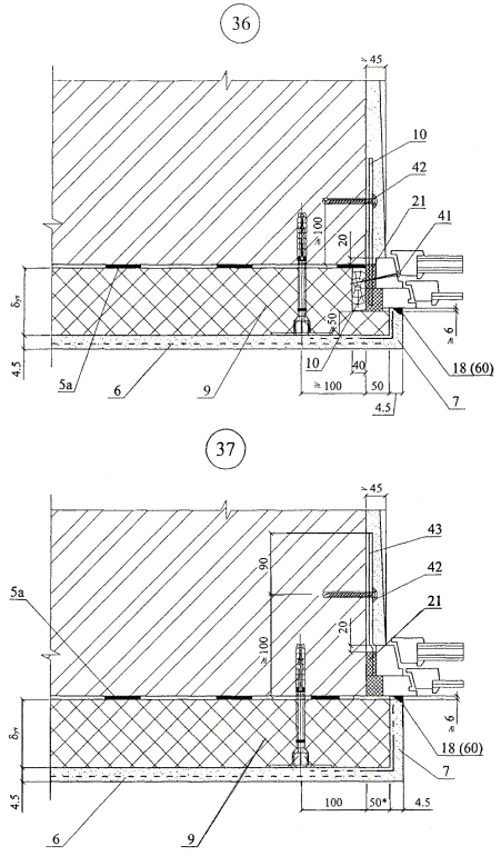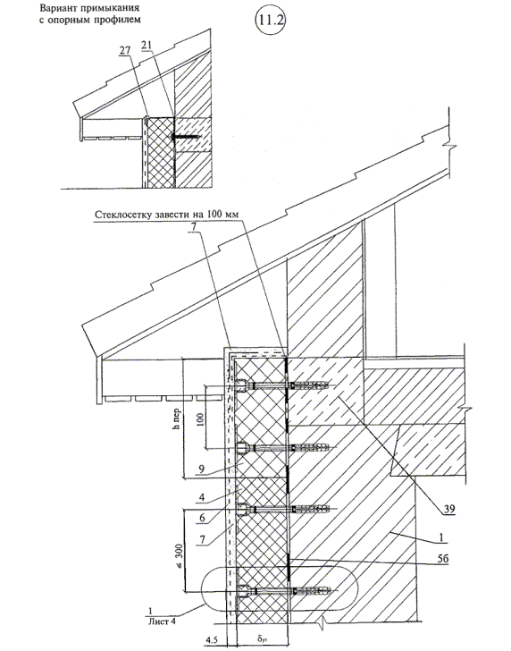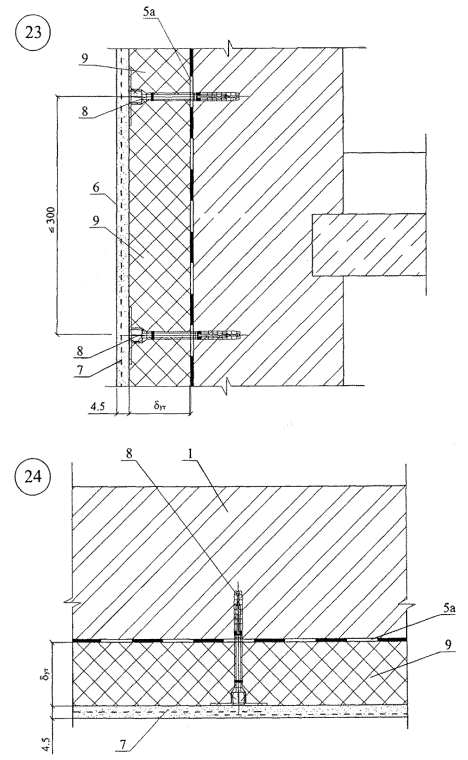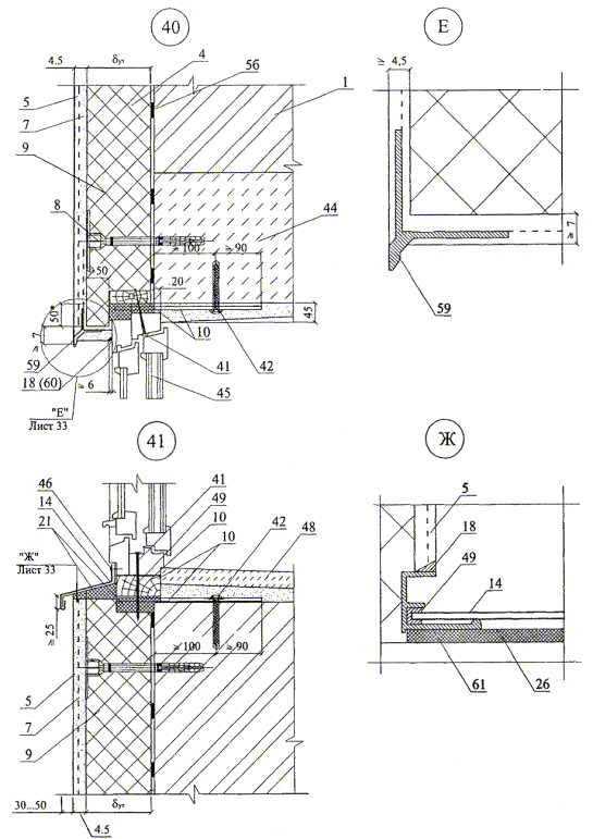 - принципиальное конструктивное решение, представленное в материалах для проектирования и рабочих чертежах узлов (шифр М24.37/03 «Стены с теплоизоляцией из пенополистирола и минераловатных плит с отделочным слоем из тонкослойной штукатурки», (ОАО «ЦНИИПромзданий», 2004);