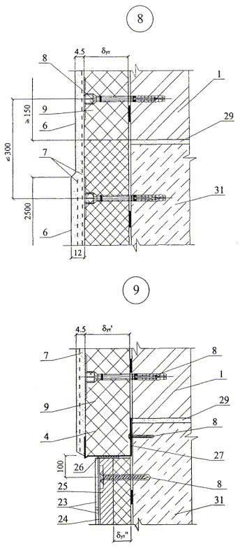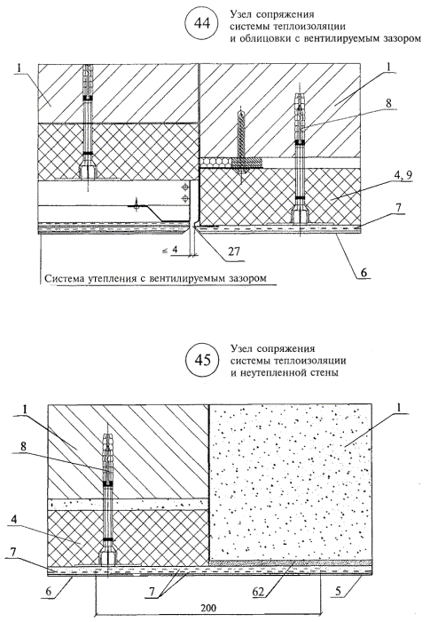 - по всей длине стыков рассматриваемой системы теплоизоляции с другой фасадной системой теплоизоляции (отделки, облицовки) должны устанавливаться рассечки из вышеуказанных негорючих минераловатных плит с высотой поперечного сечения не менее 0,15 м, на всю толщину сечения рассматриваемой системы.