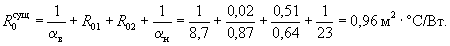 RП.внут.слоя = 0,08/0,0147 + 0,51/0,11 + 0,02/0,098 = 10,28 м2 ∙ ч ∙ Па/мг.