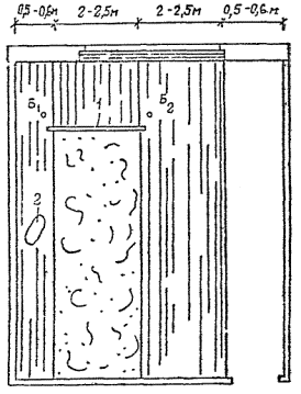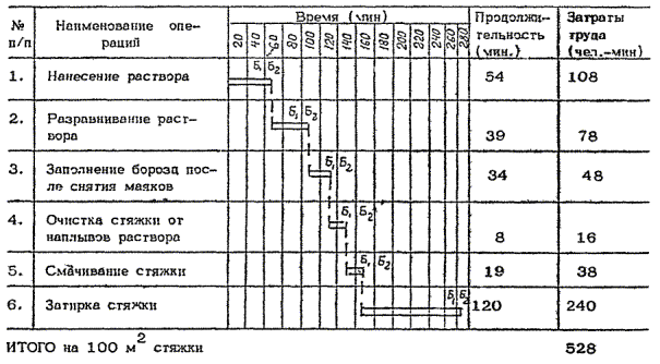 Б1 и Б2 - бетонщики 1 - маячные трубы 2 - ящик для раствора 4.3. График трудового процесса
