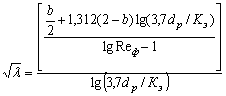 3.5.6 Число Рейнольдса Reкв, соответствующее началу квадратичной области гидравлических сопротивлений при турбулентном движении воды, определяется по формуле