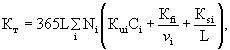 где: L - длина дорожного участка в км; Ni - годовая средняя суточная интенсивность движения автомобилей категории i на уровне расчетного года, (выражается в авт./24 ч) Кui - средние нормированные переменные затраты (зависящие от пробега) для автомобилей категории «i», установленные для движения по дорогам высшей технической категории с покрытиями хорошего состояния, в условиях равнинного рельефа местности и движения без препятствий, стоимость/автом.´км; Ci - коэффициент, учитывающий влияние реальных условий движения по соответствующему участку дороги (геометрические характеристики дороги, вид и состояние дороги, средняя скорость движения); vi - средняя скорость движения автомобилей категории «i» на соответствующем дорожном участке, км/ч; Кfi - постоянные средние нормированные затраты для автомобилей категории «i», стоимость/авт.´ч; Кsi - средние затраты, связанные с простоями автомобилей на пересечениях дорог, на ж.д. переездах, на переходах через реки и т.п. для автомобилей категории «i» на соответствующем участке дороги, стоимость/авт. Расчетные значения в формуле (1) определяются каждой страной в зависимости от характеристик собственного автомобильного парка, специфических эксплуатационных условий и способа учета затрат по перевозкам. Для обеспечения сопоставимости результатов расчетов эксплуатационных затрат автомобилей при установлении значений расчетных параметров рекомендуется соблюдать следующие требования: группировка автомобилей производится по категориям и видам на основе переписей движения, однако, не следует допускать большую дифференциацию структуры движения. Возможно проведение расчетов с использованием общего числа автомобилей (без разбивки по категориям) или понятия «приведенный автомобиль». Средняя скорость движения vi определяется как средневзвешенная величина для дорожного участка длиной L в зависимости от: - категории дороги; - геометрических характеристик дорог; - типа и состояния дорожного покрытия; - ограничения скорости при проезде населенных пунктов; - интенсивности и структуры движения. Нормированные переменные затраты Кui рассчитываются категориям автомобилей по формуле (2):