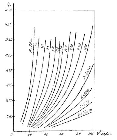 Примерная диаграмма № 2Увеличение действительных переменных расходов по отношению к нормированным расходам в зависимости от влияния кривых малых радиусов.