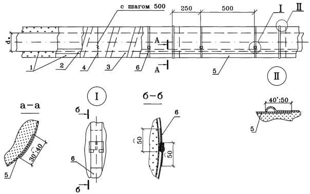 1 - цилиндры марок «ISOTEC KK-ALC», «ISOTEC KK-AL» с облицовкой паронепроницаемой алюминиевой фольгой 2 - проклейка мест соединений алюминиевой клейкой лентой шириной 75 мм Рис. 2. Конструкция тепловой изоляции трубопроводов цилиндрами марок «ISOTEC KK-ALC», «ISOTEC KK-AL» с креплением металлического защитного покрытия бандажами 1 - цилиндры марок «ISOTEC KK-ALC», «ISOTEC KK-AL» 2 - алюминиевая клейкая лента шириной 75 мм 3 - предохранительный слой 4 - кольцо из проволоки 2 мм 5 - защитное покрытие 6 - бандаж с пряжкой Рис. 3. Конструкция тепловой изоляции трубопроводов цилиндрами марок «ISOTEC KK-ALC», «ISOTEC KK-AL» с креплением защитного покрытия винтами