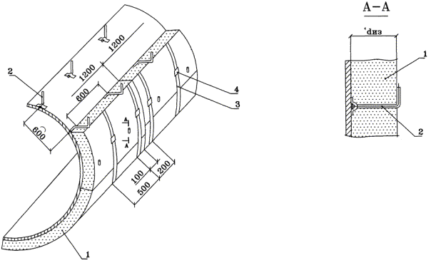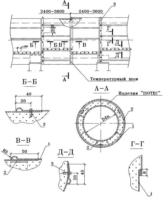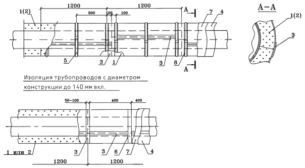 1 - конструкция теплоизоляционная полносборная с теплоизоляционным слоем из цилиндров «ISOTEC KK-ALC» Рис. 8. Конструкция теплоизоляционная полносборная на основе цилиндров марки «ISOTEC КК» с металлическим защитным покрытием и креплением бандажами