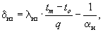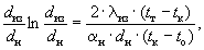 5.2. Тепловая изоляция с целью обеспечения заданной температуры на поверхности изоляции5.2.1. Тепловую изоляцию оборудования и трубопроводов по заданной температуре на поверхности изоляции выполняют в случае, когда тепловые потери не регламентированы, но в соответствии с требованиями техники безопасности необходимо защитить обслуживающий персонал от ожогов или снизить тепловыделения в помещении. 5.2.2. В соответствии с санитарными нормами и требованиями СНиП 41-03-2003 температура поверхности расположенных в помещении изолируемых объектов при температуре теплоносителя ниже 100 °С не должна превышать 35 °С, а при температуре теплоносителя 100 °С и более не должна превышать 45 °С. В обслуживаемой зоне на открытом воздухе температура поверхности изоляции с металлическим защитным покрытием должна быть не выше 55 °С, а для других видов покрытий не должна превышать 60 °С. Температура на поверхности тепловой изоляции трубопроводов, расположенных за пределами рабочей или обслуживаемой зоны, не должна превышать температурных пределов применения материалов защитного покрытия, но не выше 75 °С. 5.2.3. Толщина тепловой изоляции, определяемая по заданной температуре на её поверхности, зависит от расположения изолируемого объекта (на открытом воздухе или в помещении), температуры окружающего воздуха (to), температуры теплоносителя (tm), наружного диаметра (dн) и коэффициента теплоотдачи от поверхности к окружающему воздуху (aн), Вт/(м2×°С). Расчет толщины тепловой изоляции для плоских и цилиндрических поверхностей с наружным диаметром 2 м и более выполняется по формуле: