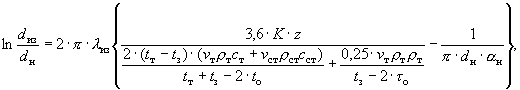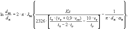 Расчет толщины тепловой изоляции для цилиндрических поверхностей с наружным диаметром менее 2 м выполняется по формуле: