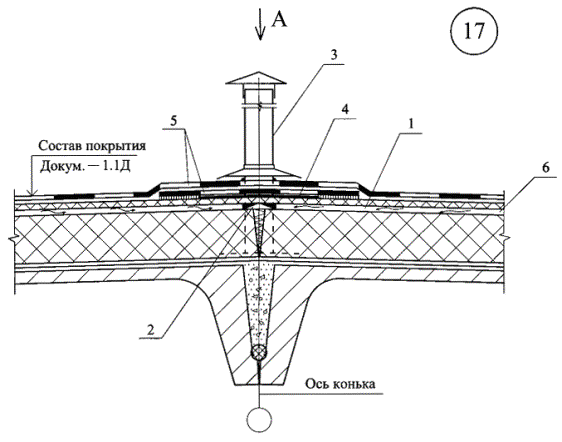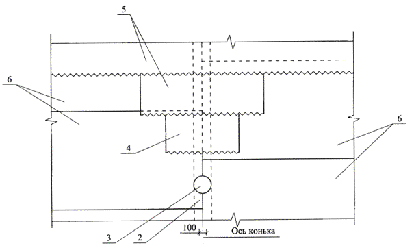 В коллекторные каналы монтируются вентиляционные трубы (вентиляторы низкого давления с минимальным диаметром 110 мм). Таким образом обеспечивается необходимая циркуляция воздуха между свесом и укосами конька на расстоянии не менее 10 м в каналах ендовы и через 6 - 8 м в каналах конька.
