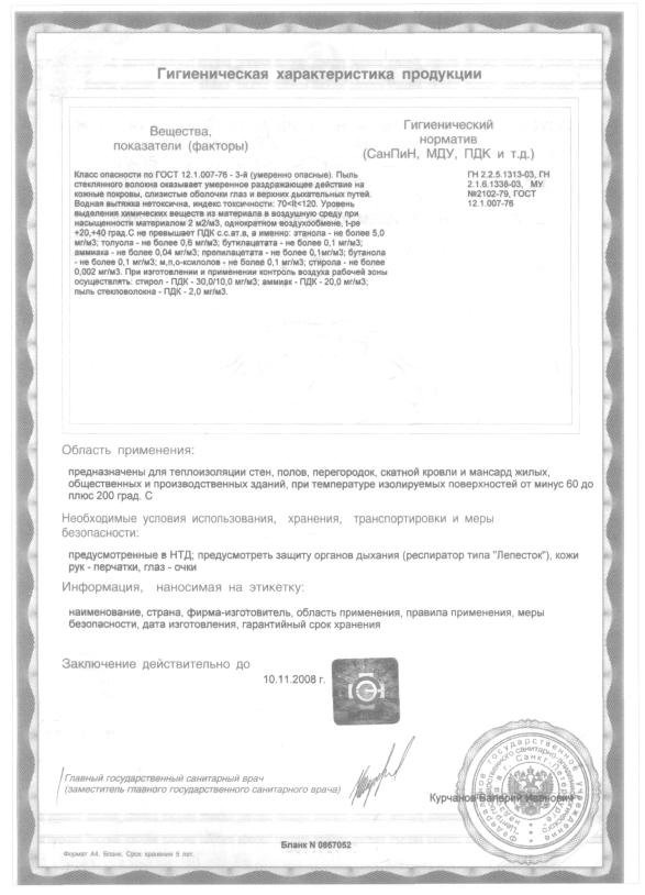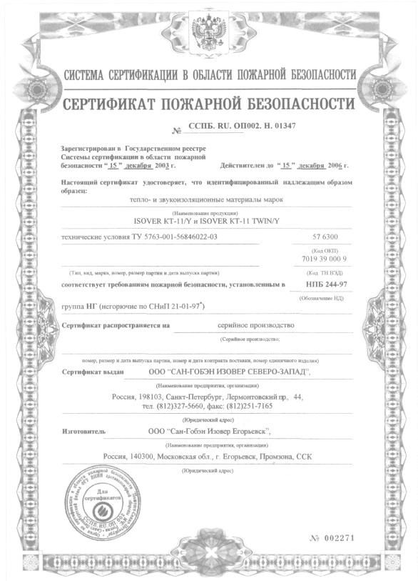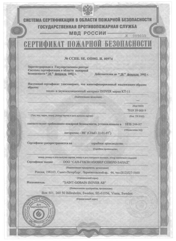 Таблица 6 Плиты марок KL-E, KL, KL-A и маты марок KT; KT-11 и KT-11-TWIN из стеклянного штапельного волокна на синтетическом связующем Разработчик/изготовитель: фирма «Saint-Gobain Isover OY» (Финляндия)