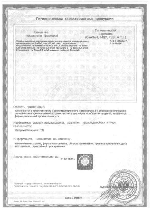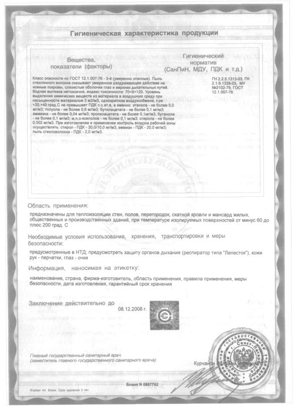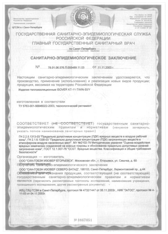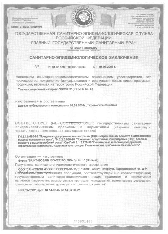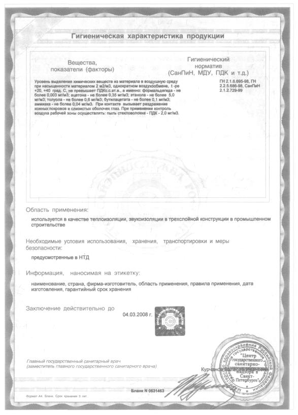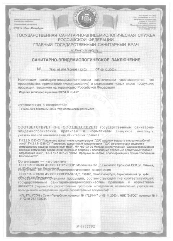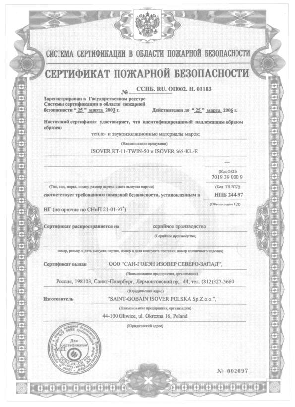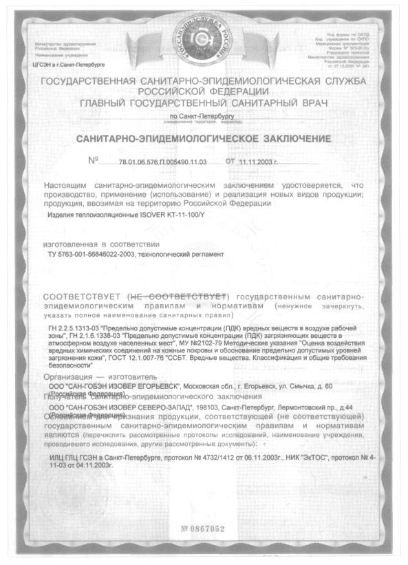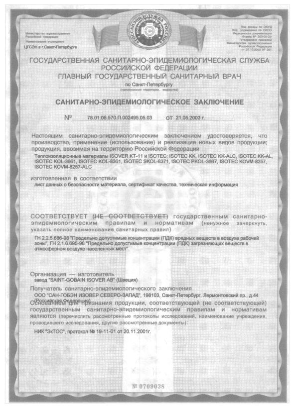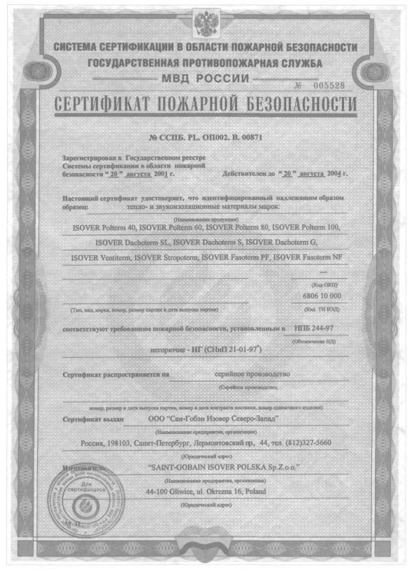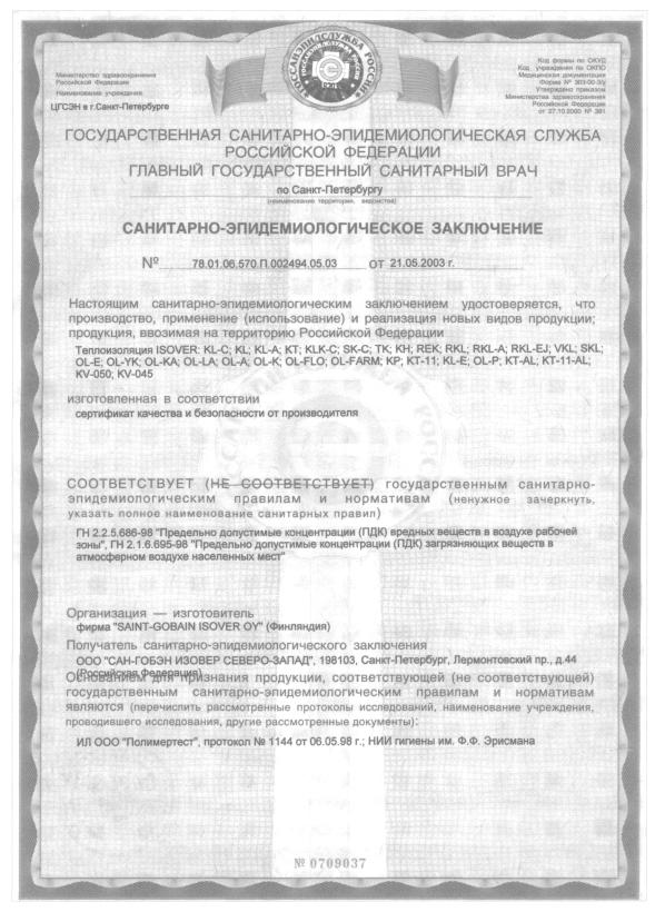 Таблица 2 Плиты теплоизоляционные из стеклянного штапельного волокна на синтетическом связующем марок OL-K-30, OL-YK, OL-P Разработчик/изготовитель: фирма «Saint-Gobain Isover OY» (Финляндия)