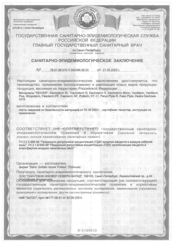 Таблица 4 Плиты теплоизоляционные из минеральной ваты на синтетическом связующем марок Dachoterm G, Dachoterm S и Dachoterm SL Разработчик/изготовитель: фирма «Saint-Gobain Isover Polska Sp. Z.o.o.» (Польша)
