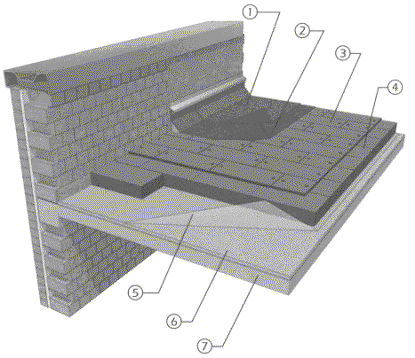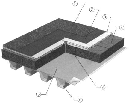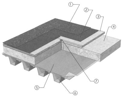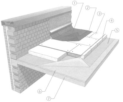 Еще одним вариантом утепления кровли по бетонному основанию является двухслойная система изоляции, выполненная из каменной ваты: верхний слой состоит из плит ISOVER Dachoterm G, нижний слой - из плит ISOVER Dachoterm SL.