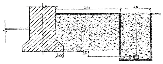 где LФ - уширение фундамента; LД - ширина дренажной траншеи; j - угол внутреннего трения грунта (рис. 6). 3.4.1.5. При использовании дренажной обсыпки трубы дренажей несовершенного типа укладываются на нее, а трубы дренажей совершенного типа укладываются на втрамбованный в грунт основания дренажа щебень, поверх которого укладывается дренажный слой. 3.4.1.6. Дренажные обсыпки прямоугольного очертания устраиваются с помощью инвентарных щитков, изготавливаемых в соответствии с технологической картой. Дренажные обсыпки трапецеидального очертания отсыпаются без щитков с откосами 1:1. 3.4.1.7. При слоистом строении осушаемой толщи грунта часть дренажной траншеи засыпается песком на 0,3 - 0,5 м выше непониженного уровня грунтовых вод. В однородных грунтах с коэффициентом фильтрации менее 5 м/сут обратная засыпка дренажной траншеи выполняется на высоту 0,6 - 0,7Н (где Н - высота от низа дренажной обсыпки до непониженного уровня грунтовых вод на линии дрены). Рис. 6. К определению безопасного расстояния дренажной траншеи от контура заглубленной части (фундамента) сооружения