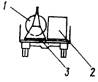 Схема размещения траверсы с ковром и контейнеров на грузовой площадке автотранспортного средства: 1 - монтажно-транспортная траверса с ковром; 2 - контейнер для доборных элементов; 3 - поперечная балка для крепления траверсы 2.5. Сборные кровельные ковры сворачивают в рулоны только на сердечник траверсы, которая является составным элементом установки для намотки и транспортирования кровельных ковров и перевозится в горизонтальном положении. Для защиты рулона от острых предметов при установке на грузовую площадку необходим зазор 100 - 150 мм между поверхностью площадки и низом рулона ковра.