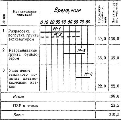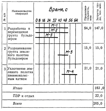 1 - бульдозер; 2 - пневмоколесный каток; 3 - поливомоечная машина 4.4. График трудового процесса
