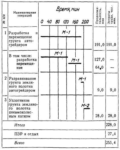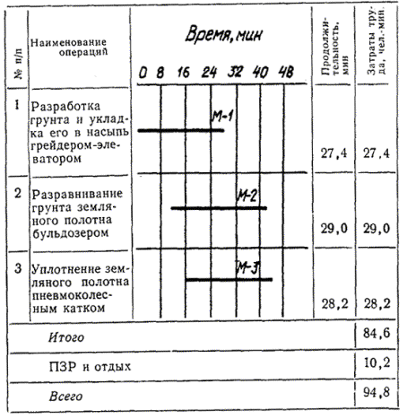 1 - бульдозер; 2 - автогрейдер; 3 - поливомоечная машина 4.7. График трудового процесса.
