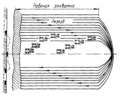 V. ПРИЕМЫ ТРУДА 5.1. Разработка и перемещение грунта автогрейдером. Выполняет М-1 в течение 191 мин. Разработку резерва М-1 начинает от внутренней бровки и выполняет в последовательности, указанной на рисунке.