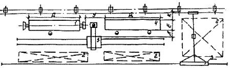 Рис. 10. Размещение подвесных конвейеров: 1 - оборудование; 2 - подвеска; 3 - конвейер; 4 - склад. Таблица 22