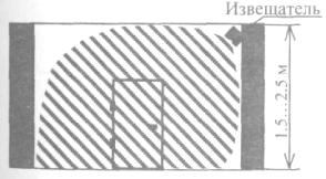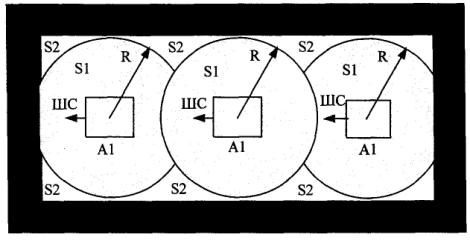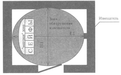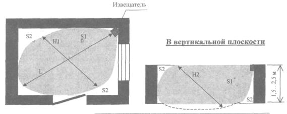 S1 - зона обнаружения извещателя S2 - зона незащищаемая извещателем