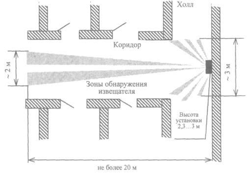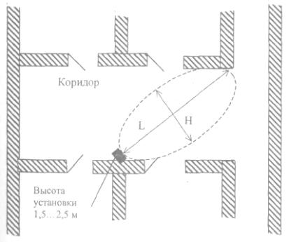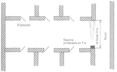 Вариант 4. Блокировка коридора извещателем объемным радиоволновым (комбинированными) 4. Блокировка объема помещений В горизонтальной плоскости