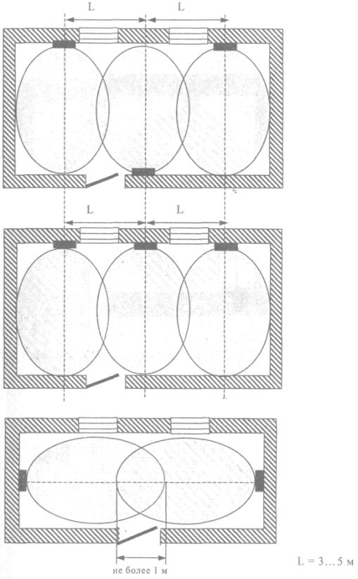 Вариант 2. Блокировка помещения несколькими объемными радиоволновыми (комбинированными) извещателями 5. Блокировка окон В горизонтальной плоскости