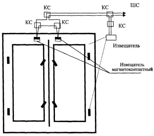 Вариант 2. Блокировка двери на открывание извещателем магнитоконтактным