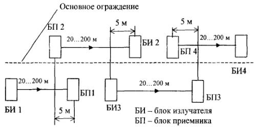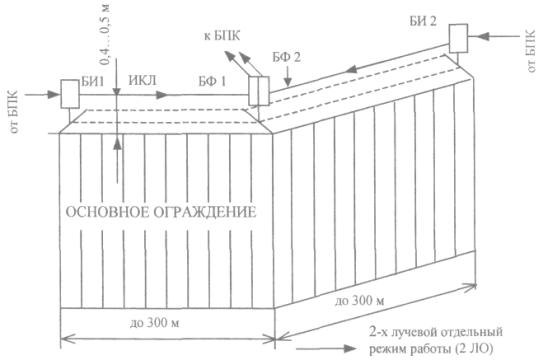 БПК - блок питания и контроля БИ - блок излучателя БФ - блок фотоприемника ИКЛ - инфракрасный луч ® - 2-х лучевой совместный режим работы (2ЛС)