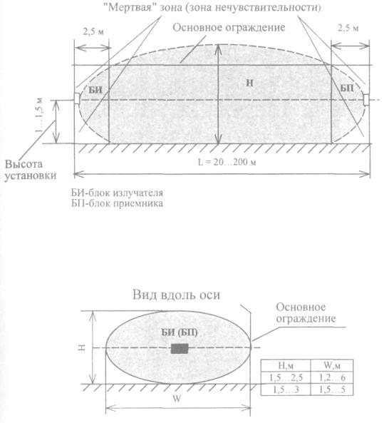 Вариант 3. Блокировка основного ограждения извещателем активным оптико-электронным Вид сбоку