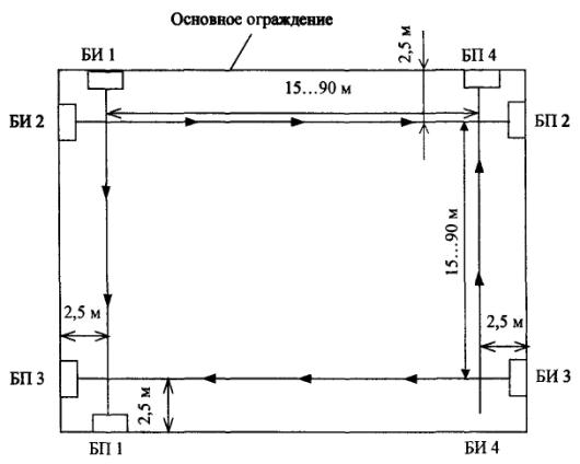 Вариант 5. Блокировка замкнутого основного ограждения извещателями линейными радиоволновыми 7. Блокировка площадок