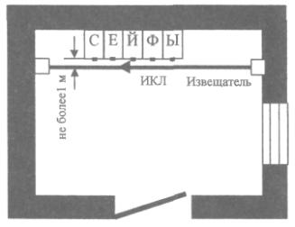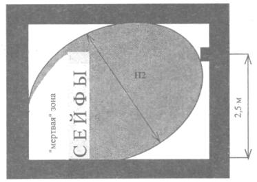 Максимальная площадь, контролируемая одним извещателем при установке на: металлическом шкафе - не менее 6 м2 по внешней его поверхности; металлическом засыпном сейфе - не менее 3 м2 по его поверхности. Вариант 2. Блокировка сейфа извещателем поверхностным вибрационным