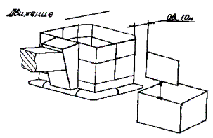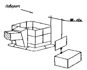 Рисунок 2. Схема положения люльки АПК относительно приспособления «щит-препятствие» при повороте стрелы