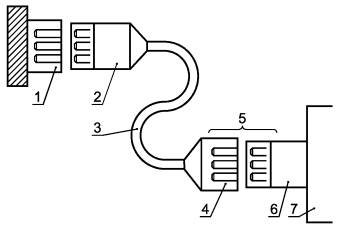 1 - закрепленная сетевая розетка; 2 - сетевая вилка; 3 - съемный шнур сетевого питания; 4 - сетевой соединитель; 5 - приборный соединитель; 6 - приборный ввод; 7 - оборудование Рисунок 3 - Съемные шнуры сетевого питания и соединители 6.10.2. Монтаж несъемных шнуров сетевого питанияНесъемные шнуры сетевого питания должны быть защищены от истирания и резких изгибов в месте, где шнур входит в оборудование, одним из следующих средств: а) плавно скругленные края отверстия или втулки; б) надежно фиксируемая защита шнура, изготовляемая из изоляционного материала, выступающего за входное отверстие на расстояние, равное не менее пяти наружным диаметрам шнура, с наибольшей возможной для подключения площадью поперечного сечения. Для плоских шнуров за наружный диаметр принимают наибольший размер внешнего поперечного сечения шнура. Соответствие проверяют осмотром, и, при необходимости, измерением размеров. Крепление шнуров должно предохранять проводники шнура от деформаций, включая скручивание, когда они соединены внутри оборудования, и должно защищать изоляцию проводников от истирания. Защитный провод заземления (при наличии) должен подвергаться нагрузке в последнюю очередь, если шнур проскальзывает в креплении. Крепления шнуров должны отвечать следующим требованиям: а) шнур не должен сжиматься винтом, находящимся непосредственно на шнуре; б) на шнуре не должно быть узлов; в) не должно быть возможности вставить шнур в оборудование на такое расстояние, которое могло бы привести к возникновению опасности; г) нарушение изоляции в креплении шнура, имеющего металлические части, не должно приводить к тому, чтобы доступные токопроводящие части становились опасными для жизни; д) в качестве крепления шнура не следует использовать обжимающую втулку, если в ней не предусмотрена фиксация шнуров сетевого питания всех типов и размеров, соответствующих требованиям 6.10.1 и подходящих для соединения с применяемыми клеммами, или если эта втулка не была предназначена для заделки экранированного шнура сетевого питания; е) крепление шнура должно быть сконструировано таким образом, чтобы его замена не приводила к возникновению опасности, и должно быть понятно, как обеспечена защита от повреждений; Соответствие проверяют осмотром и следующим испытанием на проталкивание - вытягивание. Шнур проталкивают вручную в оборудование, насколько возможно. Затем шнур подвергают 25-кратному равномерному вытягиванию с силой, указанной в таблице 11 и прилагаемой каждый раз в течение 1 с в наименее благоприятном направлении. Сразу после этого шнур подвергают в течение 1 мин скручиванию с крутящим моментом, значение которого указано в таблице 11. Таблица 11 - Механические испытания шнуров сетевого питания