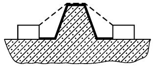 Пример 1 - Траектория включает в себя паз с параллельными или сходящимися сторонами любой глубины шириной менее X.