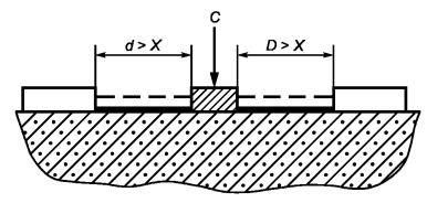 б) любое углубление перекрыто изоляцией по хорде длиной, равной X, и размещено в наименее благоприятном положении (см. пример 3);