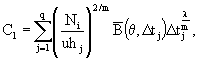 константа C1, где q - число j-ых участков длительностью Δtj, в пределах которых пробная нагрузка Ni, средне интегральная по времени и температура (θ1Δtj) и высота вмороженной части сваи hj принимаются постоянными;