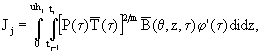 4. Нагрузку P(τ) в формулах (19) и (20) можно представить как удельное сопротивление по нижнему торцу сваи и по ее боковой поверхности где Pо и Pб - удельное сопротивление мерзлых грунтов по нижнему торцу сваи площадью F и по боковой поверхности смерзания площадью uhj; Nj - расчетная нагрузка. Внося Pо и Pб в (19) и (20), получим Jj = Jj,о + Jj,б, (22) где Jj,о, Jj,б - определяются по формулам (19) и (20) с заменой P(τ) соответственно на Pо(τ) и Pб(τ). Формула (22) позволяет расчеты свайных фундаментов проводить с учетом изменения во времени соотношения между нагрузками, отнесенными к нижнему торцу и к боковой поверхности сваи. Дополнительное условие, учитывающее перераспределение нагрузок, следует из (22) и характеризует связь между скоростями перераспределения нагрузок и размерами сваи. 5. Интегральные функции где Верхние и нижние пределы интегрирования в формулах (24) и (25) принимаются по условию (19). Формула (25) может иметь две дополнительные модификации в зависимости от сочетания функций времени для нагрузок и температуры грунта. 6. Для расчетов свайных фундаментов интегральная функция вычисляется по формуле где u и hj - периметр и высота вмороженной части сваи на j-ом участке эксплуатации сооружения; P(τ,z), θ(τ,z) - нагрузка и температура с учетом изменения их во времени и по глубине z ≤ hj. Для функции Учет перераспределения нагрузок между нижним торцом и боковой поверхностью сваи производится по формулам (21) - (23). 7. Интенсивность касательных
