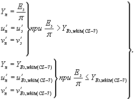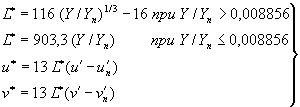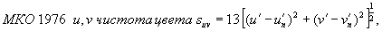 где Y, u', v'-рассматриваемый цветовой стимул и Yn, u'n, v'n - стандартный ахроматический стимул. Примечание - Приблизительно коррелированные значения чистоты цвета, насыщенности цвета и цветовой тон могут быть вычислены следующим образом: