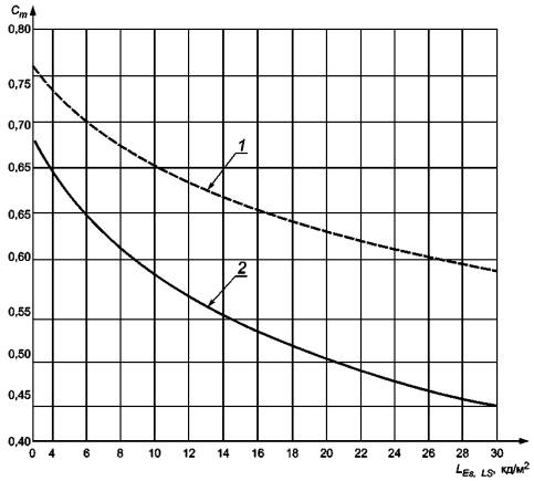 1 - плоские панели с абсолютным яркостным кодированием, более высоким уровнем яркости; Рисунок 18 - Графическое представление уравнения (22) Примечание - Потребители часто предпочитают дисплеи с более высоким уровнем яркости (например 100 кд/м2), особенно в условиях высокой внешней освещенности. 7.15 Контраст