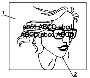 1 - фон; 2 - нежелательное изображение (зеркальное отражение) Рисунок 23 - Пример нежелательного изображения, обусловленного зеркальным отражением На дисплее отображают две строки текста. Лицо пользователя непреднамеренно отражается на экране, создавая изображение, конкурирующее с текстом. Необходимо поддерживать достаточно низкий контраст отраженного изображения, чтобы оно не конкурировало с информацией на экране. Примечание - Пример относится как к большому источнику яркости (щека), так и к малому источнику яркости (оправа очков). 7.18 Полярность изображенияДве полярности изображения - темные знаки на светлом фоне (позитивная полярность) и светлые знаки на темном фоне (негативная полярность), отображаемые панелью ВДТ, должны соответствовать требованиям настоящего стандарта. Пользователи в соответствии со своими предпочтениями могут изменять полярность изображения. Если дисплей воспроизводит обе полярности изображения, должно быть обеспечено соответствие требованиям настоящего стандарта для каждой полярности изображения. Примечание - Каждая полярность изображения имеет свои преимущества, например: - при позитивной полярности зеркальные отражения менее заметны, границы воспринимаются резче, проще получить световой баланс. Позитивная полярность предпочтительна для обыкновенных офисных задач; - при негативной полярности мелькание менее заметно, разборчивость лучше для пользователей с аномально низкой остротой зрения, а знаки могут иногда казаться большими, чем на самом деле. 7.19 Однородность яркостиДля намеченной однородной яркости неоднородность яркости в условиях внешней освещенности не должна превышать порога ухудшения визуального восприятия. При этом ее оценивают в трех местах на экране для класса диапазона направления наблюдения Classviewing IV согласно 7.2 Проектное направление наблюдения; в зависимости от решаемой задачи могут быть использованы требования Classviewing III, или I (см. рисунок 24 и таблицу 14).