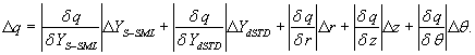 Неопределенность коэффициента яркости Δq оценивают, например, используя частную производную в качестве основы оценки полной неопределенности в соответствии с уравнением (27):
