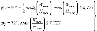 См. также 7.2 Проектное направление наблюдения. 8.4.1.1 Вычисление критического азимутального угла На рисунке 30 показаны примеры азимутальных углов (направления). Значения, использованные в качестве примеров на рисунках 14, 30 и в таблицах 33 и 35, идентичны. 1 - пейзажная ориентация, φD = 90°, θD = 0° и φC = 63,4° (таблица 33); 2 - пейзажная ориентация, φD = 270°, θD = 0° и φC = 63,4° (таблица 34); 3 - портретная ориентация φD = 270°, θD = 10° и φс = 71,6° (таблица 35) Примечание - Примеры показаны не в масштабе. Рисунок 30 - Примеры испытательных азимутов Пять испытательных азимутов рассчитывают на основе проектного азимутального угла φD и проектного угла наклона θD. Шестой азимутальный угол определен как φD - 180°. Еще два азимутальных угла (0° и минус 7°) определяют для некоторых измерений; перпендикуляр к экрану и проектное направление наблюдения, см. рисунок 30. Верх или низ плоских панелей ближе к глазам пользователя. Если ближе низ панели, то проектный азимутальный угол φD = 270°, для другого случая 90°. Если проектное направление наблюдения θD = 0°, то проектный азимутальный угол не влияет на измерения, см. рисунок 13. Область ACDBE, ограниченная для пользователя и разделенная на четыре равных сектора (на рисунке 30 показаны полужирными линиями). Область АЕВ разделена на два сектора (показаны прерывистой полужирной линией). Критический угол φC = (360° - ÐAEB)/4; ÐAEB/4 = (2ÐCAD)/4 = [2 arctg (CD/AC)]/4 = [2 arctg (Wview/Нvieт]/4 = 1/2 arctg (Wview/Hview). Необходимые азимуты для области ACDE: φD, φD + φC, φD - φC, φD + 2φC, φD - 2φC.