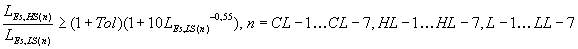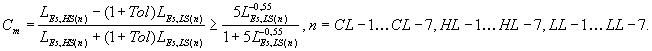 где n = CL-1 ...CL-7, HL-1 ...HL-7, LL-1 ...LL-7 или эквивалентное неравенство коэффициента контрастного отношения: где п = CL-1...CL-7, HL-1...HL-7, LL-1...LL-7. Графическое представление уравнения (21) показано на рисунке 20.