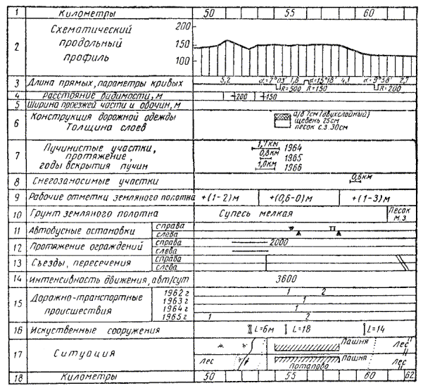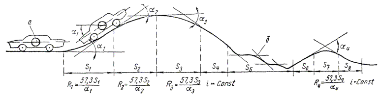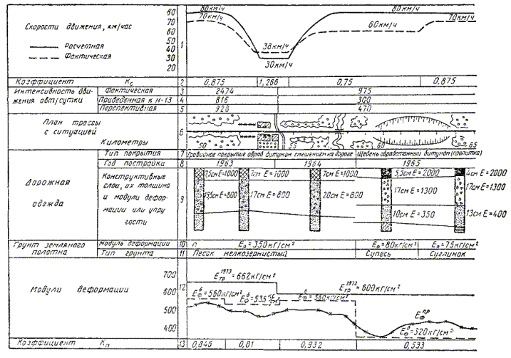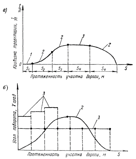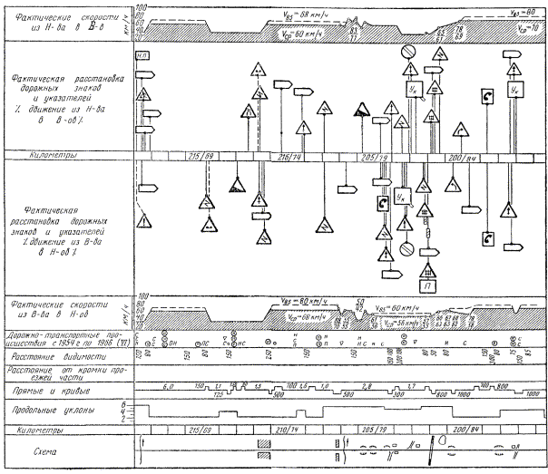 ИЗДАТЕЛЬСТВО «ВЫСШАЯ ШКОЛА» МОСКВА - 1971 В написании брошюры приняли участие сотрудники кафедры «Проектирование дорог» МАДИ - докт. техн. наук, проф. В.Ф. Бабков (Введение, § 19, 20 и общее редактирование всей книги), канд. техн. наук, доценты В.Н. Иванов (§ 10) и Н.П. Орнатский (§ 5, 6, 8, 11), канд. техн. наук О.А. Дивочкин (§ 2, 3, 15, 16 и гл. VI), Е.М. Лобанов (§ 17), В.В. Сильянов (гл. IV и § 20), Ю.М. Ситников (§ 2, 3, 7, 9) и В.С. Порожняков (§ 1 и гл. VII), инженеры С.К. Кашкин (§ 18) и Р.А. Малкис (§ 4). ВВЕДЕНИЕПредусмотренное Директивами XXIII съезда КПСС по пятилетнему плану развития народного хозяйства СССР на 1966 - 1970 гг. резкое увеличение выпуска автомобилей приведет к значительному повышению интенсивности движения на дорогах, и еще острее станет проблема обеспечения безопасности движения. Современные дороги должны обеспечивать безопасность движения автомобилей на всем пути следования независимо от погоды и времени года. Однако внимательный анализ особенностей режимов движения автомобилей показывает, что на дорогах имеется много неудачных, опасных или трудных для движения мест, которые требуют от водителей повышенной внимательности, вызывают заторы и задержки. Въезжая на опасные или трудные участки, неопытные или неосмотрительные водители, которые едут с высокой скоростью, не считаясь с особенностями расположенных впереди участков дороги, сталкиваются с необходимостью резкого торможения и часто попадают в аварийную ситуацию. Аналогичное положение может создаваться и у усталых водителей, имеющих замедленную реакцию. Поэтому места значительного снижения скоростей транспортного потока всегда характеризуются повышенной вероятностью возникновения дорожно-транспортного происшествия. Устранение опасных мест на дороге улучшает ее транспортно-эксплуатационные качества. Дорожное строительство ближайших лет в СССР будет слагаться из нескольких характерных этапов: а) создание дорог страны в виде новых автомагистралей для дальних грузовых и пассажирских перевозок, связывающих между собой республиканские и важнейшие областные центры и крупнейшие промышленные районы; б) реконструкция, развитие и дополнение существующей сети дорог республиканского и областного значения; в) создание внутрирайонных сельскохозяйственных и местных дорожных сетей. Трудно предположить, что в ближайшие годы окажется возможность перестроить все старые дороги в соответствии с современными техническими нормами для дорог. Следовательно, необходимо обеспечить путем реконструкции движение на всем протяжении дороги со скоростью, близкой к скоростям движения современных грузовых автомобилей, т.е. порядка 70 - 80 км/час. Такие дороги будут обладать достаточно высокими транспортно-эксплуатационными качествами. Пока еще, к сожалению, часто не понимают, что дорога, которую можно проехать с постоянной скоростью 60 км/час, более выгодна и безопасна для автомобильного транспорта, чем дорога того же протяжения, на разных участках которой скорости меняются от 30 до 90 км/час. В выполнении работ по улучшению существующих дорог большое участие будут принимать дорожно-эксплуатационные организации, которым придется чаще, чем в настоящее время, улучшать элементы плана и профиля в процессе проведения капитальных ремонтов. В этом случае приобретает большое значение правильная очередность перестройк