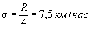 Если по данным предварительных наблюдений известно, что скорости движения автомобилей на обследуемой дороге могут быть в пределах от 50 до 80 км/час, то диапазон изменения скоростей (амплитуда) R = 30 км/час. При доверительной вероятности 95,4 % получим среднеквадратическое отклонение: