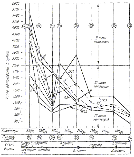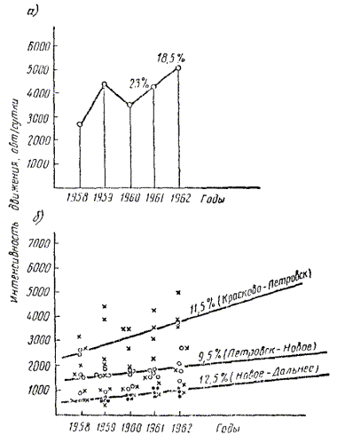 Интенсивность движения является основным показателем, регламентирующим категорию дороги, а также определяющим необходимость капиталовложений на ремонт, реконструкцию или благоустройство дороги. При этом учитывают как величину интенсивности в период, предшествующий обследованию дороги, так и ожидаемую в будущем. Последнюю можно определить, исходя из материалов учета движения за ряд лет (желательно их изучение за период не менее чем 8 - 10 лет). Данные об интенсивности движения за предыдущие годы получают в дорожно-эксплуатационных организациях.