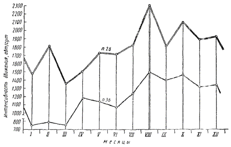 Заполненные бланки сдают в ДЭУ (дорожно-эксплуатационный участки), где вычисляют среднемесячную, а потом и среднегодовую суточную интенсивность движения, а также наибольшую часовую интенсивность за каждый месяц и за год, максимум и минимум суточной интенсивности за год.