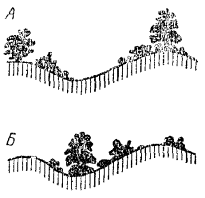 а) - плавная кривая записи, б) - изрезанная кривая записи