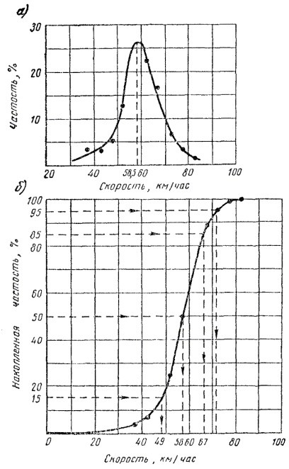 Необходимый объем наблюдений при учете движения или измерении средней скорости автомобилей должен быть рассчитан, исходя из выборочного метода математической статистики, рассматривающего обработку большого числа случайных величин с тем, чтобы с заданной степенью достоверности выявить общую среднюю закономерность.