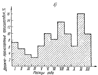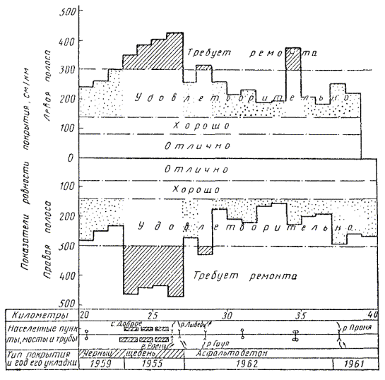 Исследования изменений ровности на ряде дорог во времени показали ухудшение ровности в первые два - три года после постройки. Это является признаком начала формирования земляного полотна и уплотнения покрытия. В последующие годы наблюдается стабилизация ровности с незначительными колебаниями в зависимости от климатических условий, типа грунтов земляного полотна и осенне-зимнего водно-теплового режима. Более существенные изменения ровности наблюдаются по сезонам года. В начале весны, в период оттаивания грунтового основания, отмечено ухудшение ровности. Особенно заметное изменение ровности наблюдалось на участках со слабой дорожной одеждой и на наиболее грузонапряженных участках. В этот период кривые распределения изменяют свою форму, асимметрия их увеличивается в сторону более высоких показателей. В последующий период, примерно с середины июня, на дорогах центральной полосы нашей страны происходит закатывание неровностей автомобилями. Ровность улучшается и на этом уровне сохраняется в продолжение всего летнего периода. В некоторых случаях может наблюдаться ухудшение ровности в особенно жаркий период года за счет деформации поверхностной обработки и асфальтобетонного покрытия в виде сдвигов и наплывов. Причиной ухудшения ровности цементобетонных покрытий в периоды с высокой температурой воздуха может служить поднятие плит из-за заклинивания швов.