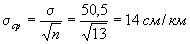 σ = Cv · Sср = 0,232 · 226,4 = 50,5 см/км